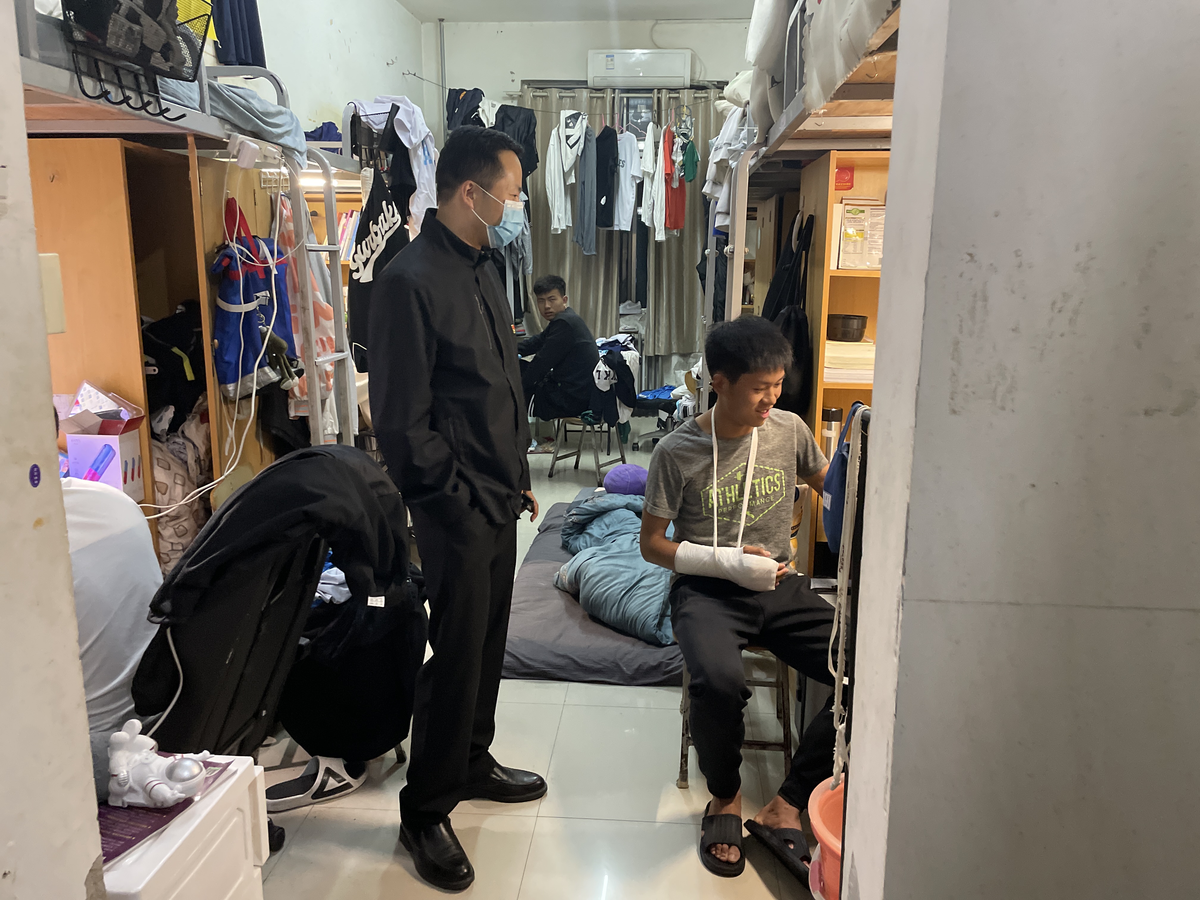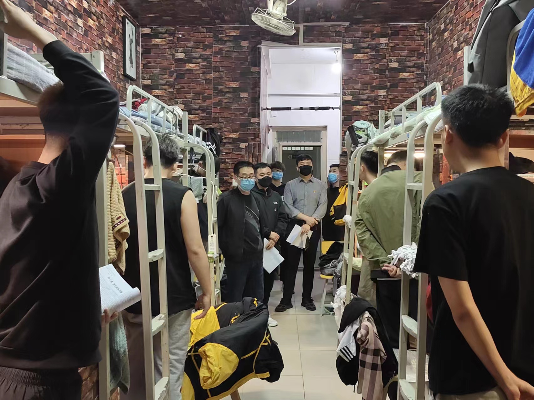 面对当前严峻复杂的防控形势,为深入了解封校期间公司员工的学习生活状态,按照公司相关部门的部署要求,扎实落实公司各项防控措施,秉持对师生健康安全高度负责的态度。5月8日晚上,伟德国际1949官网组织开展查寝工作,公司党委书记乔广礼、副经理蔡浩刚带队深入员工宿舍一线,对公司员工宿舍开展突击查寝工作。