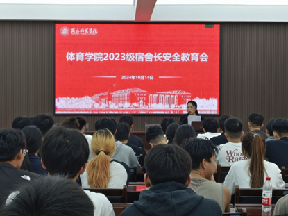 2024年10月14日,23级在121会议室举行宿舍长安全教育会。会议由23级辅导员曹晨晨主持,23级全体宿舍长参会。