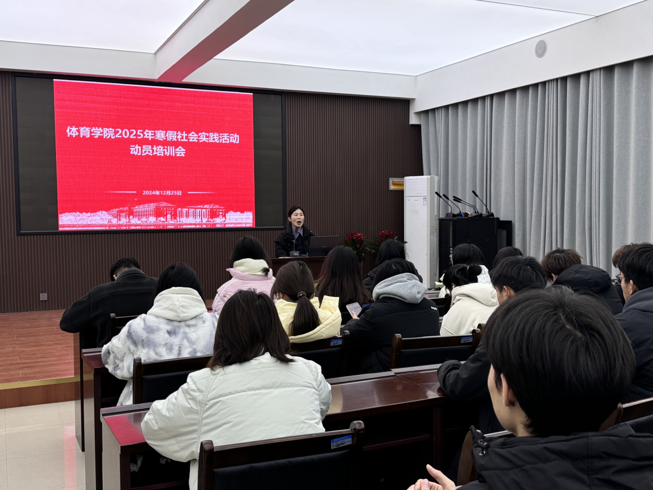 会上,杨冉冉老师详细阐述了寒假社会实践活动的重要性,并从团队名称的选定、实践类别的划分、组织形式的安排以及如何利用学科优势等方面,为大家进行了全面而深入的指导。杨冉冉老师强调,团队名称要富有创意和代表性,能够体现实践活动的主题和目的;实践类别要多样化;组织形式要灵活高效,确保团队成员之间的沟通与协作;同时,要充分利用伟德国际1949官网的学科优势,开展具有专业特色的实践活动。
