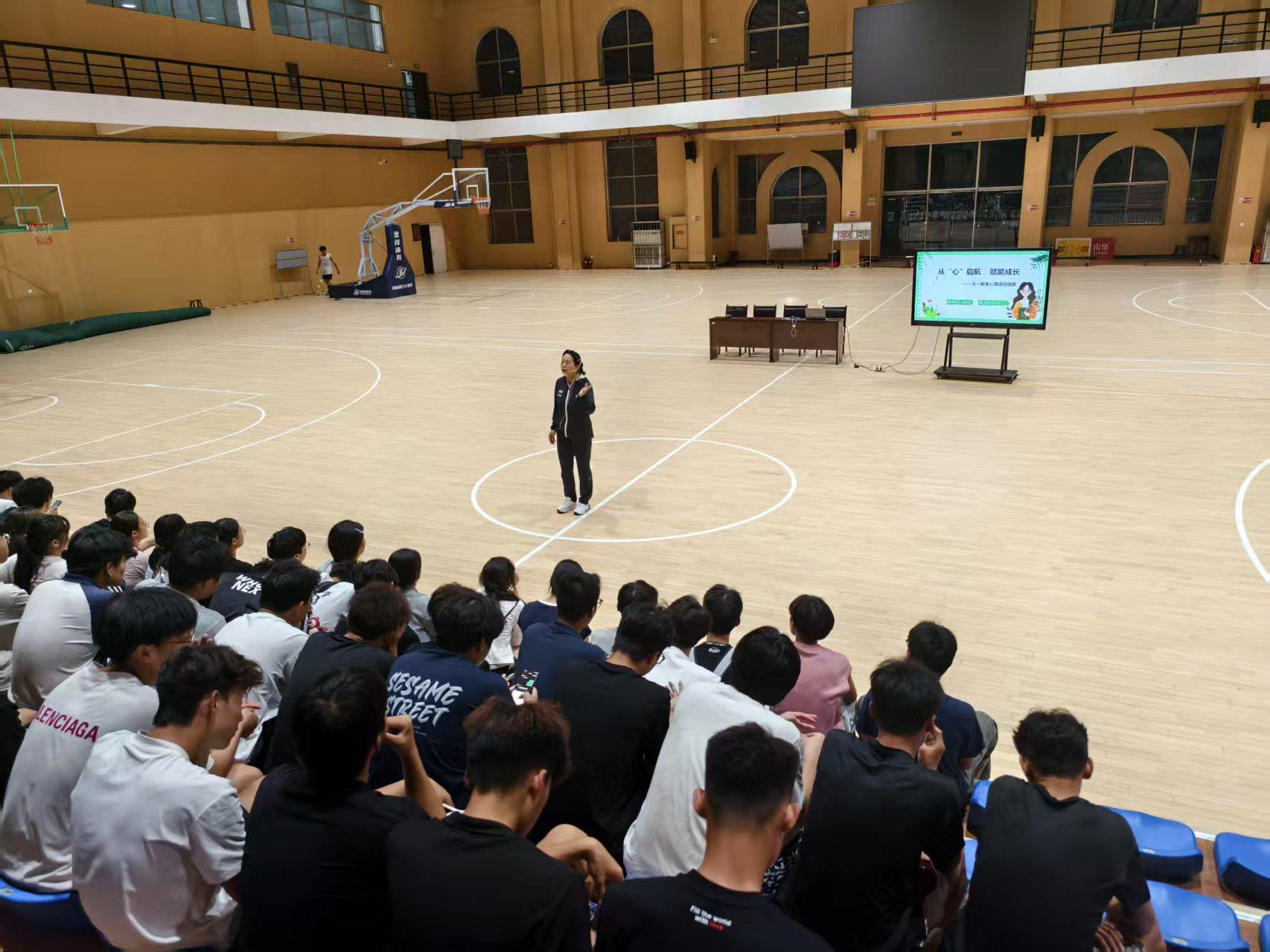 会上,郭荣娟首先指出,心理健康是“情绪稳定、适应良好、人际和谐”的动态状态,纠正“心理健康仅针对心理疾病”等认知误区,结合体育生训练压力大、竞争场景多的特点,强调心理韧性与身体素质协同发展的重要性。接着,分享适配体育生的调适技巧,包括通过规律训练释放压力、利用团队协作改善人际社交、借助目标拆解法缓解学业焦虑等。最后,详细说明校内心理咨询中心预约流程、危机干预热线等资源使用方式。