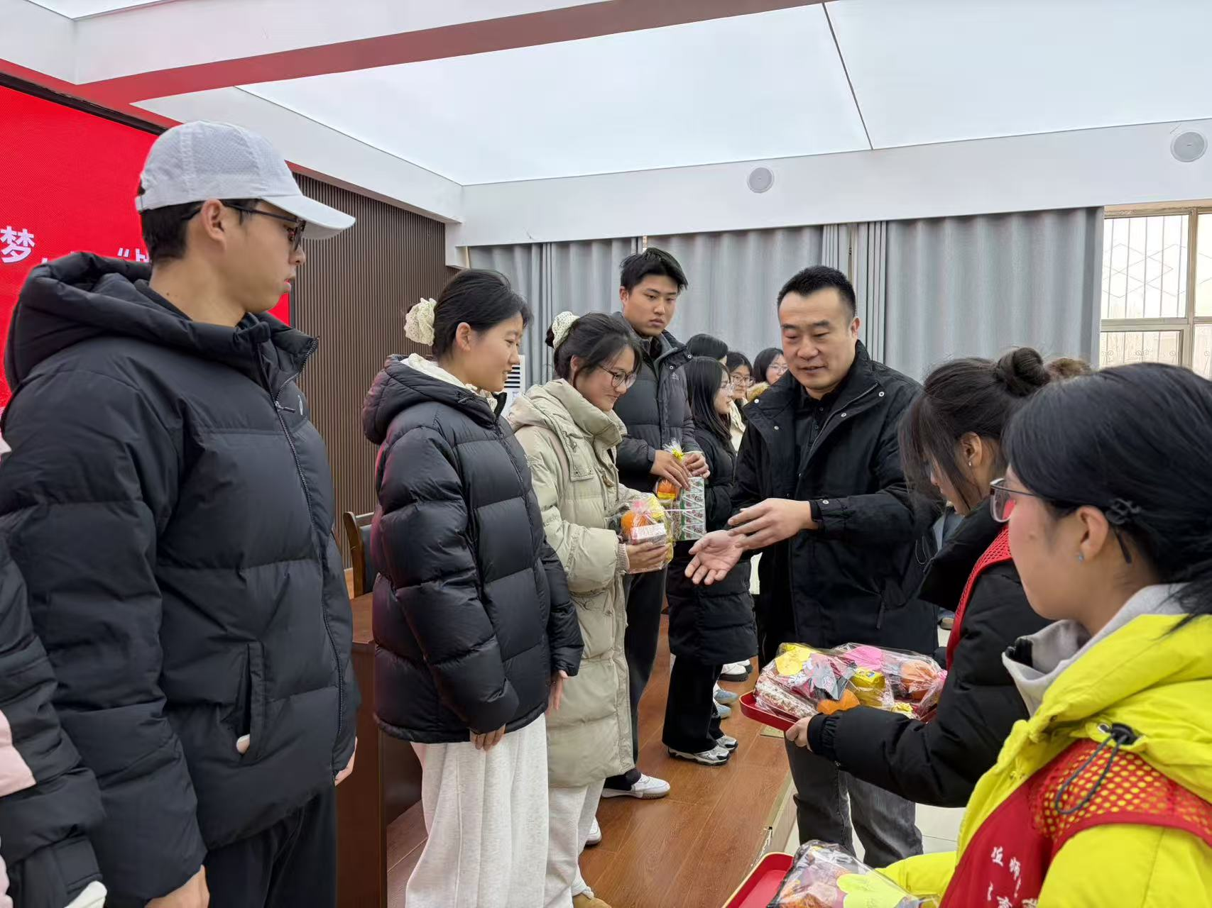 随后,公司为考研学子发放了包含爱媛果粒橙、旺仔牛奶及各类零食的慰问品。一份份暖心物资,不仅传递了公司的关怀与祝福,更让同学们感受到了浓浓的暖意,为大家注入了冲刺备考的满满动力。