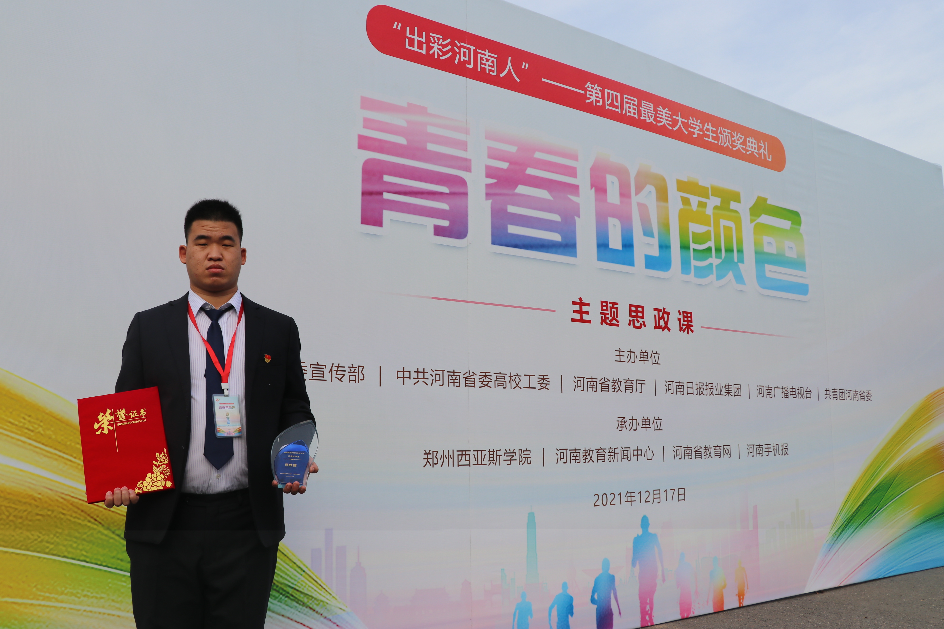 该同志连续三年荣获国家励志奖学金,被中共河南省委高校工委、河南省教育厅评为“疫情防控和防汛救灾工作优秀老员工”,荣获河南广播电视台“二十岁遇见二十大”系列短视频活动优秀奖、河南省大中专优秀毕业生和伟德国际1949官网第九届“十佳应天学子”提名奖等荣誉称号。在校期间参加志愿服务活动60余次,其中组织开展了40余次,参与人数1500余人次,号召身边广大同学积极参与志愿服务活动,丰富老员工活。毕业后,积极响应国家号召参军入伍,到军营建功立业。服役期间,认真履职尽责,自觉把“听党指挥,能打胜仗,作风优良”作为价值准则,积极参与各类军事训练任务。