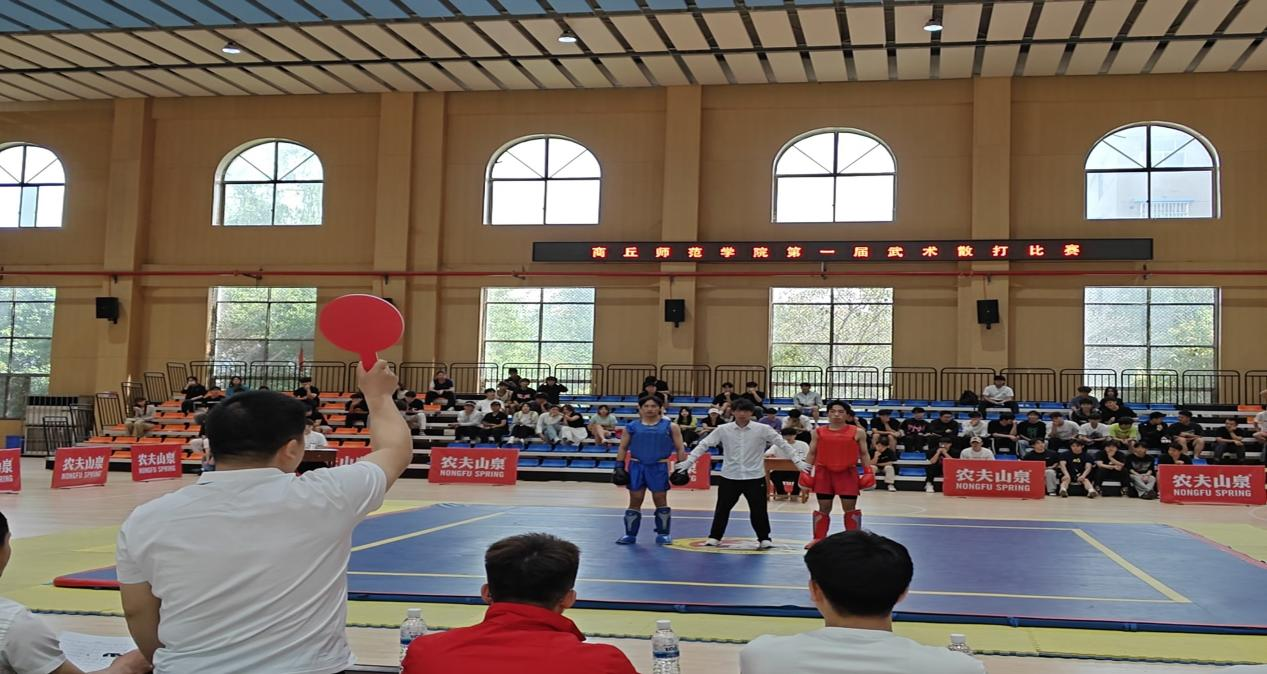 4月25日,伟德国际1949官网第一届武术散打比赛在梁园校区体育馆举行。