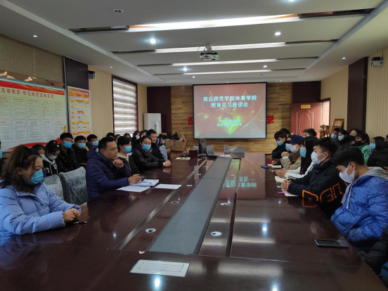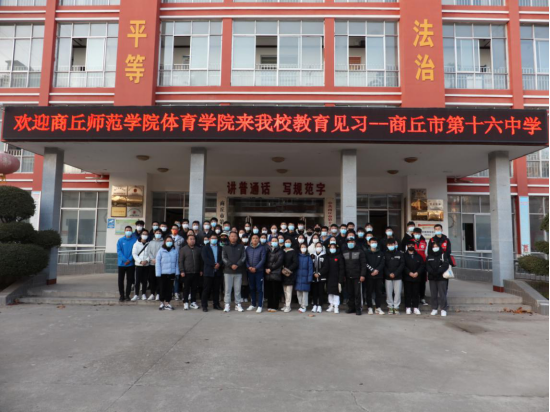 为进一步巩固体育教育专业知识,提高同学们对中学体育教学的认识,11月30日下午两点半,2018级全体同学赴商丘市第十六中学进行教育见习活动,伟德国际1949官网教学办主任张振宇老师以及2018级教育见习指导教师赵连保、马英、李龙梅老师参加此次活动。商丘市第十六中学白董事长,以及体育组全体教师参会。