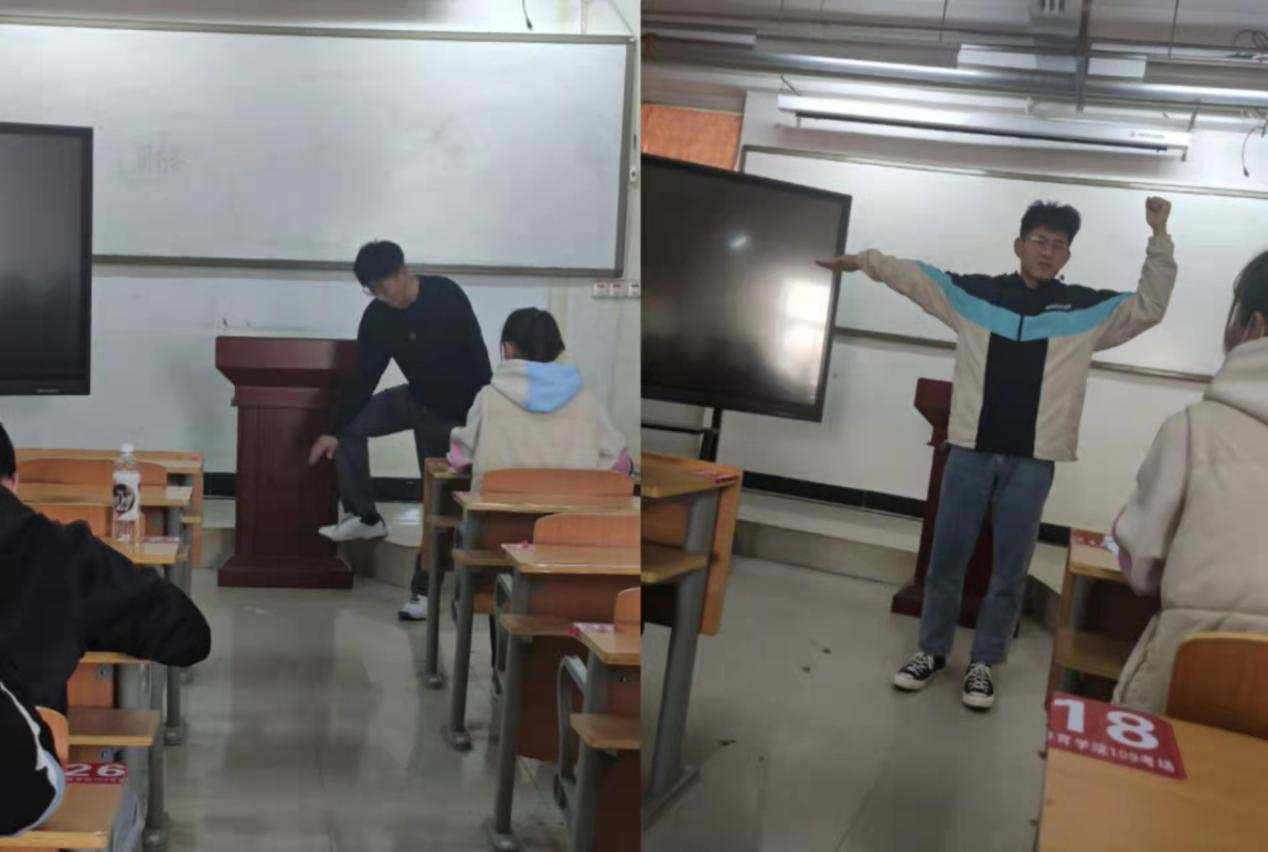 最后请学员们依次根据自己的专选,对教资面试试讲,进行现场模拟。试讲内容包含足篮排、体操、健美操、武术、羽毛球等各类项目。每位同学都精神充沛,积极准备试讲。在试讲过程中,田天莉老师仔细听讲,并认真做记录。在每位同学试讲结束后,田天莉老师对于其试讲情况进行鼓励以及点评,并提问问题。使得每位学员都积累了经验,得到了锻炼。