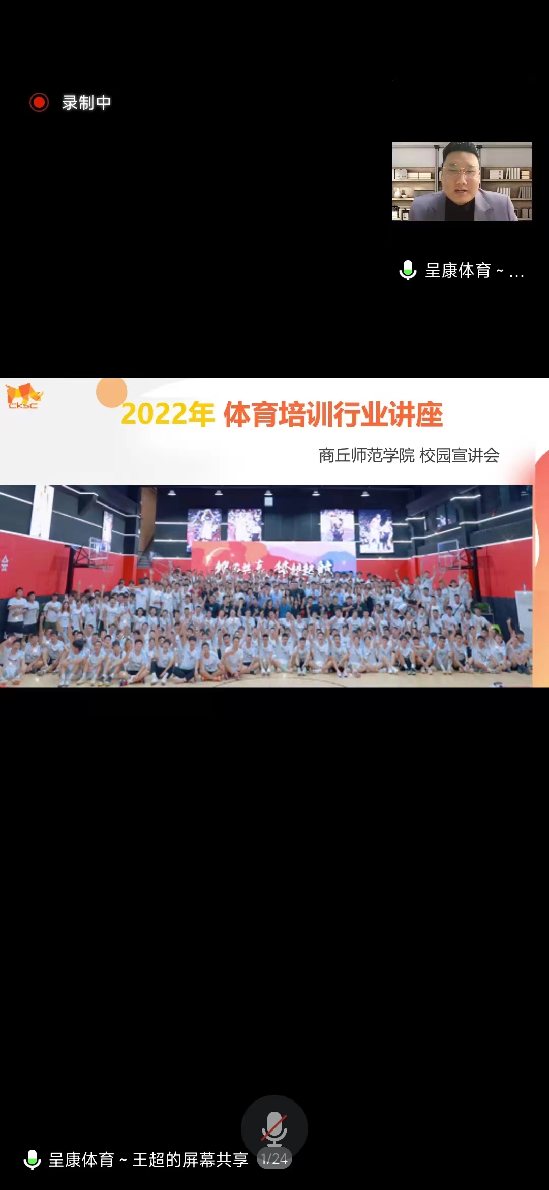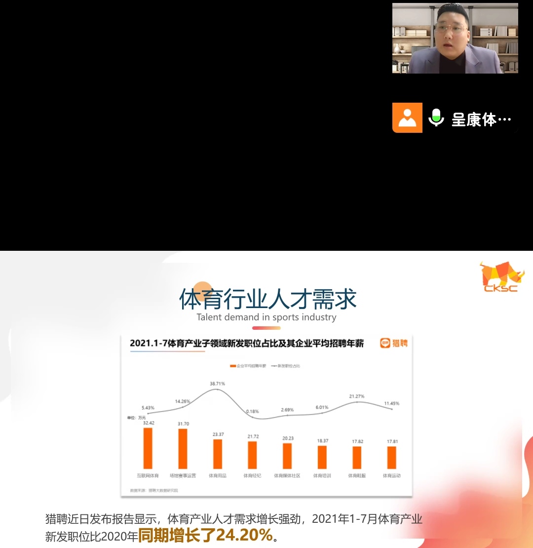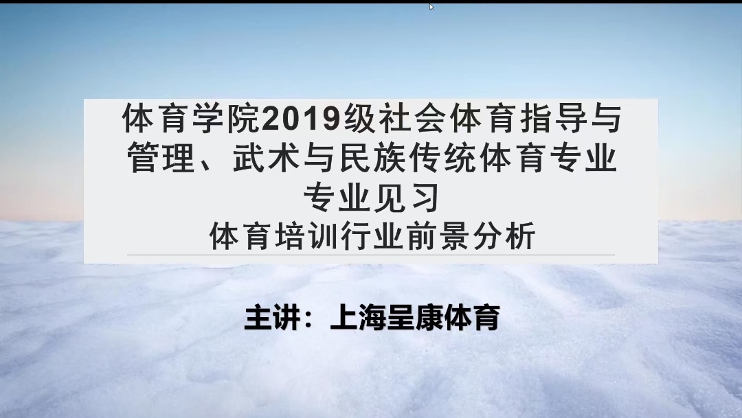为拓宽就业视野,伟德国际1949官网于11月19日下午两点召开“体育培训行业前景分析”线上主题讲座。本次会议邀请了上海呈康体育有限公司的仲伟豪经理、王超总监主讲,伟德国际1949官网教学办公室主任张振宇老师主持,2019级、2020级、2021级社会体育指导与管理和武术与民族传统体育专业全体同学参加。