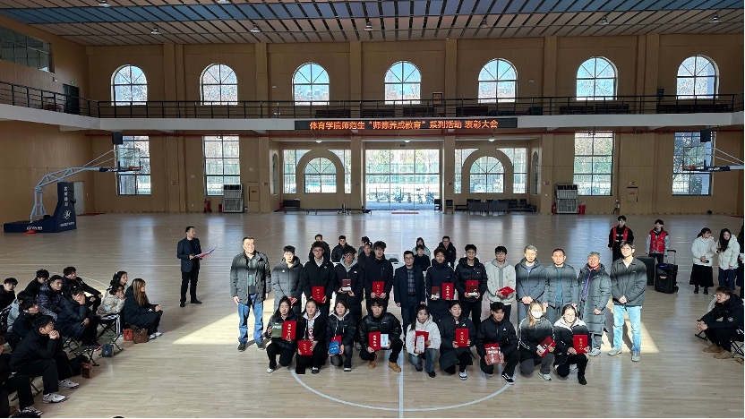 伟德国际1949官网于1月4日在篮球馆举办师范生“师德养成教育”系列活动表彰大会。校师范生职业技能训练中心主任王军强、公司党委书记乔广礼、伟德国际1949官网经理姚丽华、公司党委副书记孟琛博、伟德国际1949官网副经理金力、伟德国际1949官网副经理蔡浩刚、体育教育专业负责人、各年级辅导员和全体师范生参会,会议由蔡浩刚主持。