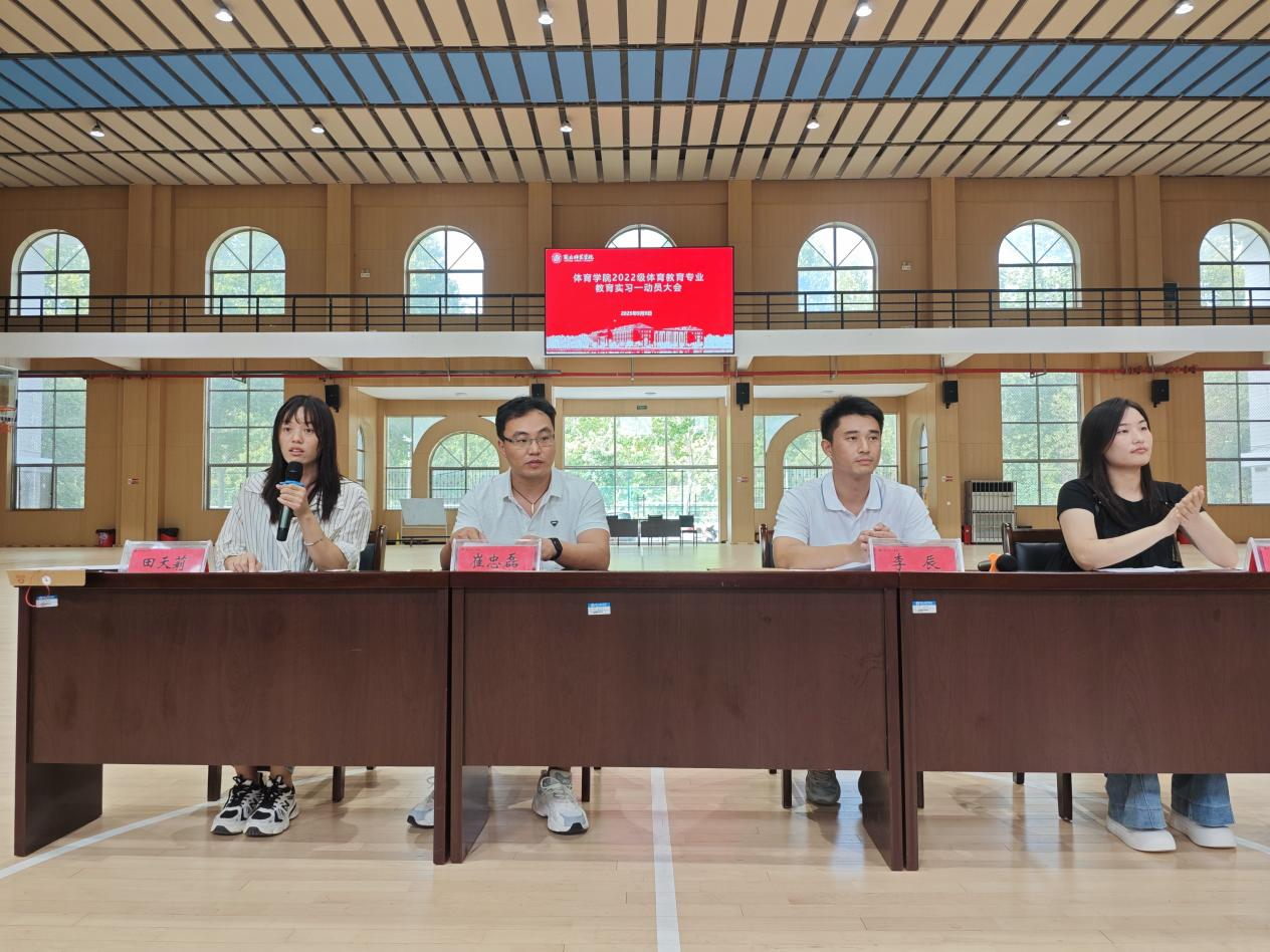 为进一步做好公司体育教育专业教育实习工作,9月9日下午,公司组织召开2026届实习Ⅰ动员大会。伟德国际1949官网专业负责人李辰、教学办公室副主任崔忠磊、2022级辅导员王艳利、全体实习指导教师及全体相关员工参加。会议由田天莉老师主持。