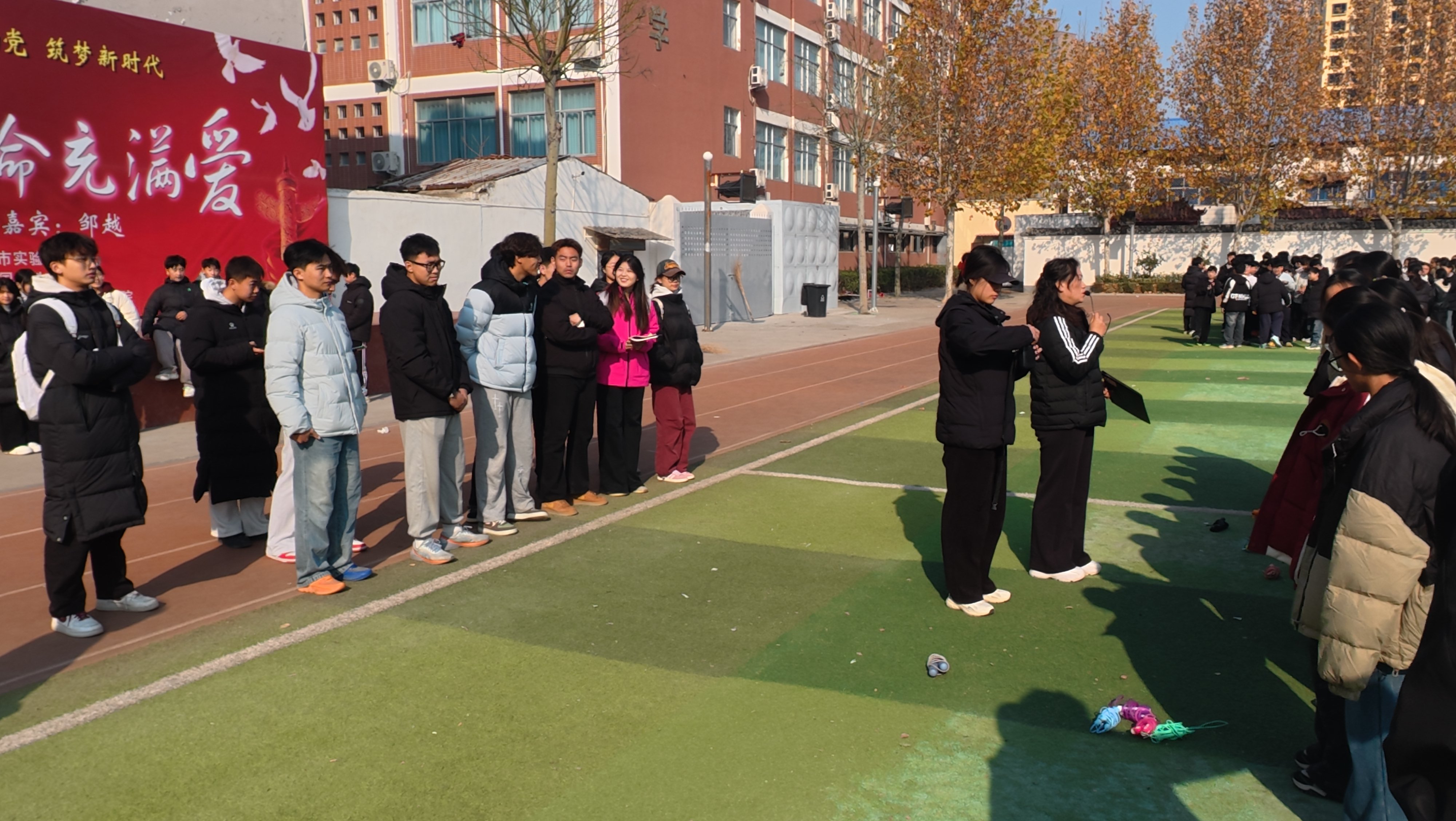 为深化师范生实践教学能力,推动“人工智能+教育”融合背景下的体育师范人才培养模式创新,12月4日上午,2023级“人工智能+”中学体育师范生成长工作坊第二组全体学员,在指导老师孟晓梅的带领下,前往商丘市实验中学初中部开展首次跟岗实践活动。本次活动以“观察·交流·实践·反思”为主线,通过深入中学教育一线,全方位体验班主任管理、主题班会、大课间组织与体育课堂教学等环节。