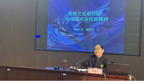 为了营造浓厚的学术氛围,拓宽研究视野,提升广大师生的体育素养,特邀河南大学二级教授、博士生导师、河南大学武术文化研究所所长栗胜夫于11月8日在伟德国际1949官网121会议室开展《传统文化进校园——中华武术与民族精神》学术报告。报告会由伟德国际1949官网经理姚丽华主持,公司教师代表及武术与民族传统专业员工代表参与。
