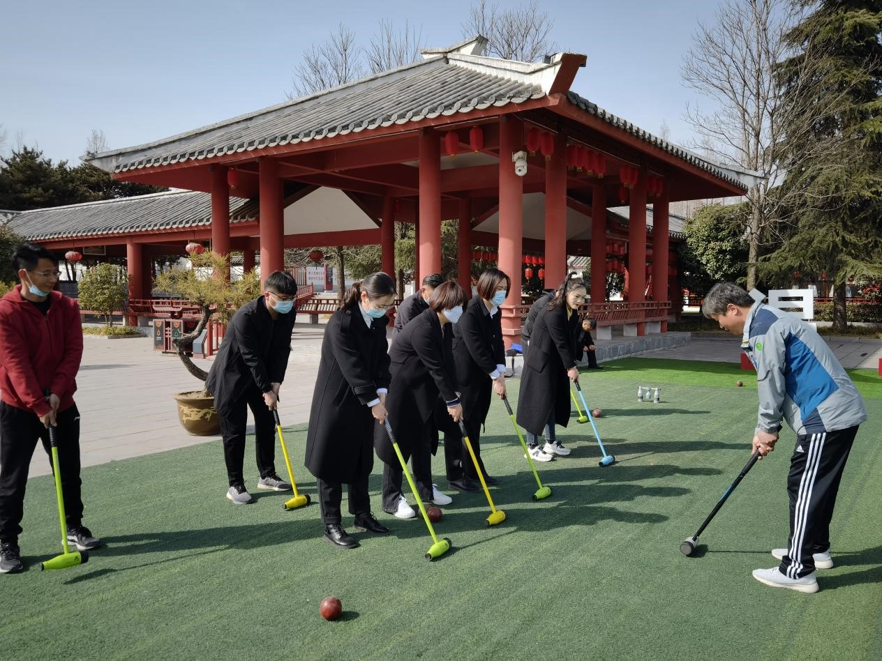 3月5日上午伟德国际1949官网教师郑振友,司钦如在永城芒砀山风景区对景区员工进行了木球运动项目的技术和裁判知识培训,,本次活动是永城芒砀山景区与公司建立合作关系以来,首次进行的体育方面的项目培训,公司和景区相关负责人都高度重视本次活动,本次活动由艺术设计公司副经理苏世昌带队(目前在芒砀山风景区挂职锻炼),景区工会主席以及景区汉礼部经理陈非全面负责培训人员的选拔和动员工作。