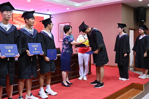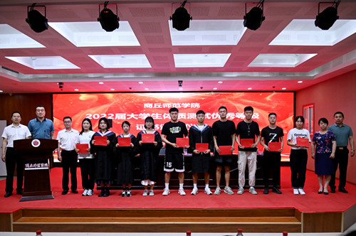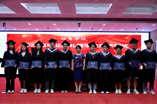 孟琛博宣读《2022年学位评定委员会会议决议》,宣读“2022届老员工体质测试优秀等级”获奖名单。随后,公司领导为毕业生们扶正流苏、颁发学士学位证书并合影留念。