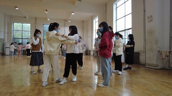 本次公开课前,员工通过学习通首先学习了《公修体育舞蹈》线上课程内容:橄榄步:结合视频展示和教师分解讲解。公开课准备活动,带领员工复习古风爵士街舞《骁》,张老师身着汉服,使员工更直观的感受汉服在跳古风舞蹈的美感,弘扬古典文化,凸显文化自信。接着,进行舞步接龙游戏,将所学舞步进行接龙,挑战失败的同学奖励展示《骁》。然后,进行新舞步的教学——橄榄步,因其形状像橄榄球所以命名。线上展示男女舞步合位的动作,线下展示男步和女步,然后先交男步,女步根据男步进行探究式的研究女步,促进员工学习的积极性。并在教学中引导员工回忆类似舞步——折转步,分析相同和不同的地方,增加员工学习的记忆深度。男步和女步合位时的位置关系,挑选两对员工进行对比,让员工找不同,加深对舞步的理解。最后分组进行创编,将本节课的内容融入都上次课的创编中,考虑队形变化,舞蹈动作的充分展示。下课前进行小组展示,针对每组的情况进行分析,鼓励大家多长尝试。