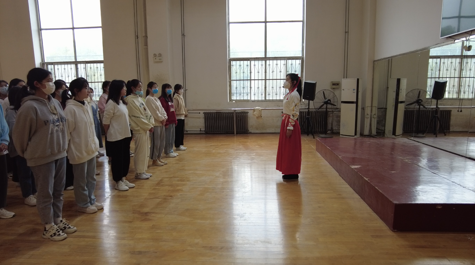 2022年5月10日下午第6节,伟德国际1949官网张莉老师《公修体育舞蹈》公开课在梁园校区健美操馆进行。伟德国际1949官网副经理蔡浩刚和体育艺术教研室主任司钦如等观看了课程。