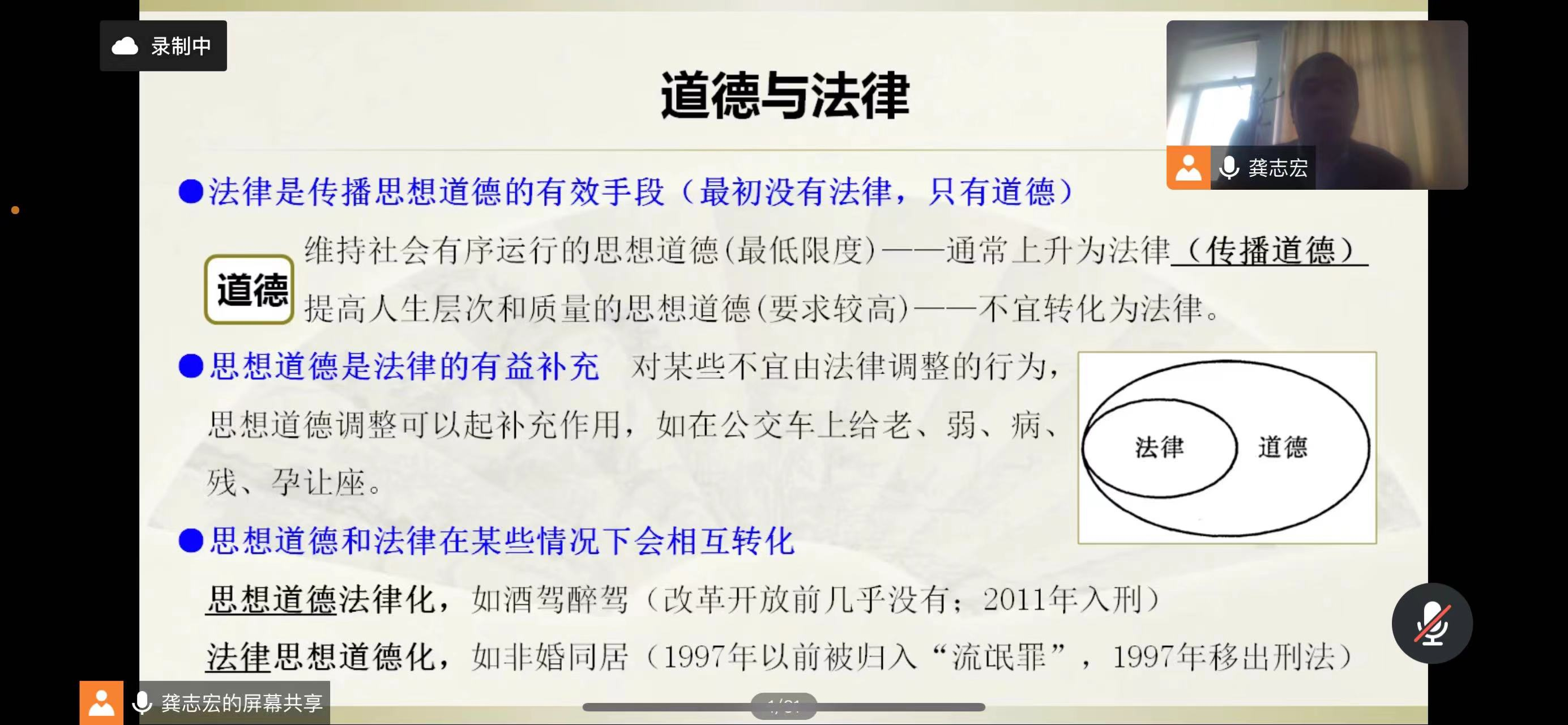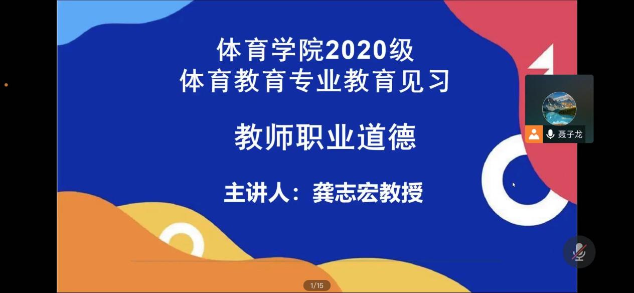 为进一步提高员工对教师职业道德的认识,加强教师队伍建设,弘扬新风正气,11月19日下午,20级体育教育二班全体员工线上参加“教师职业道德”专题讲座。本次讲座邀请到马克思主义公司龚志宏教授进行授课。
