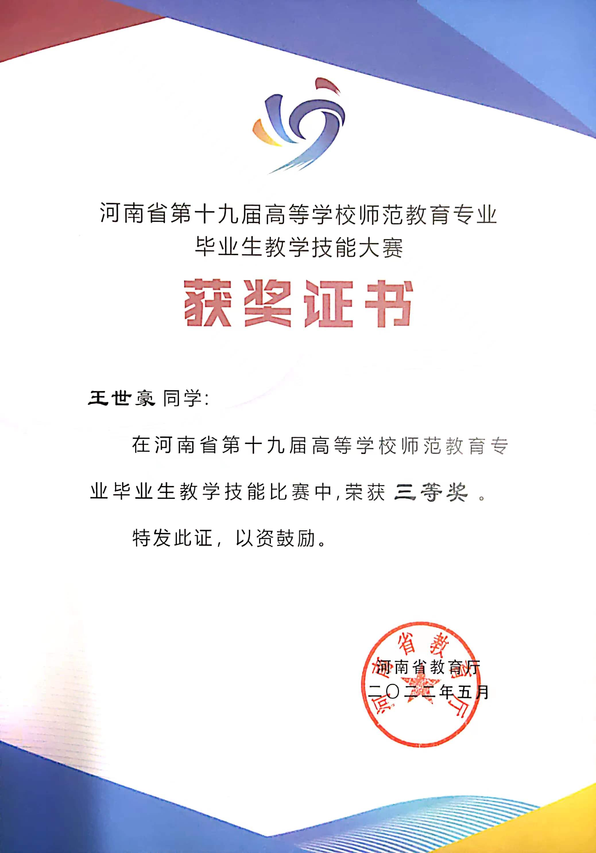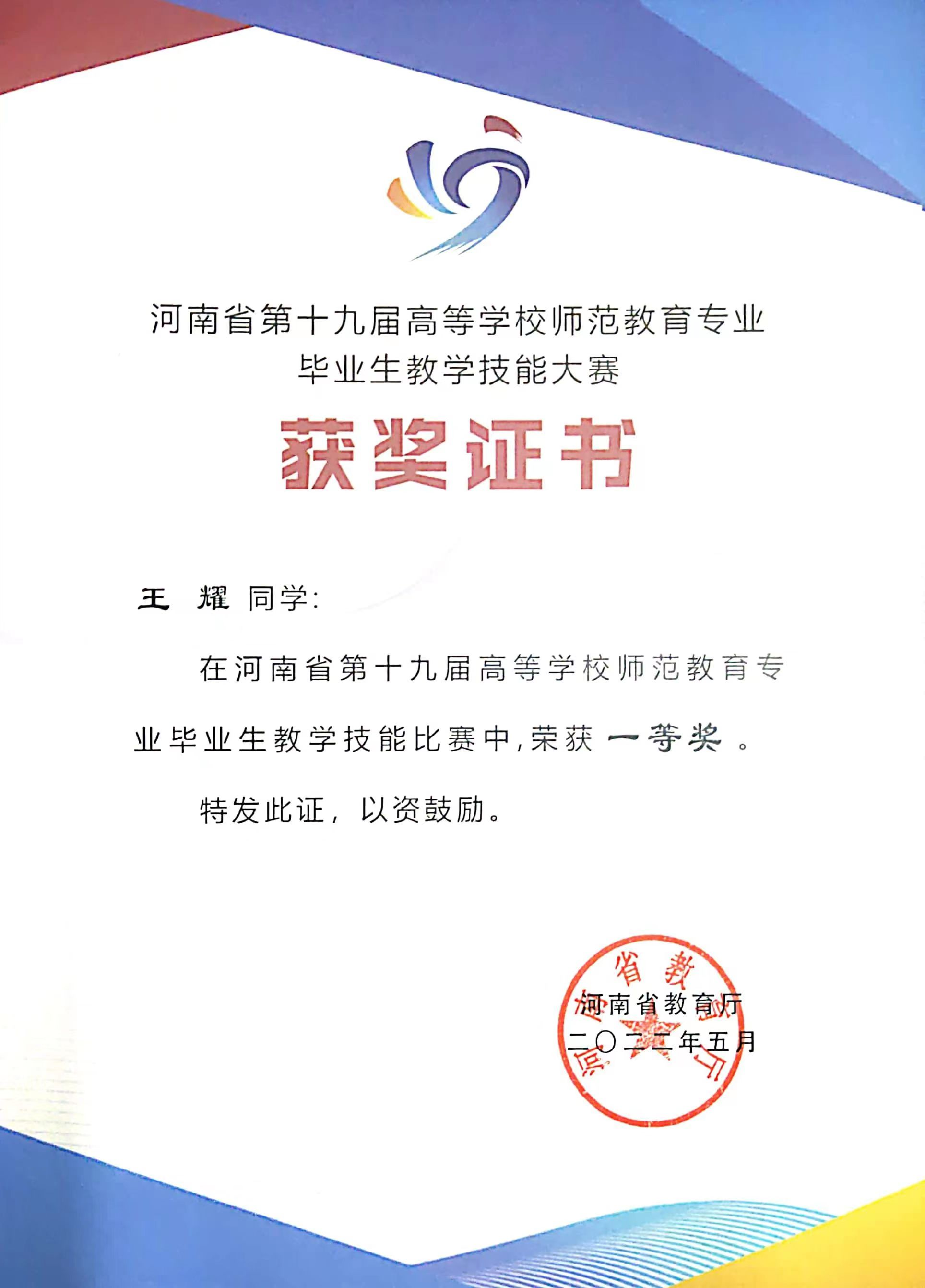 近日,河南省教育厅下发了《关于第十九届高等公司师范类专业毕业生教学技能比赛结果的公示》,该赛事是河南省师范生教学能力比赛最高赛事,公司体育教育专业师范生参加本次比赛,王耀同学荣获一等奖,黄伟斌、王世豪同学荣获三等奖,再次取得优异成绩,伟德国际1949官网教师呼美兰荣获优秀辅导奖。