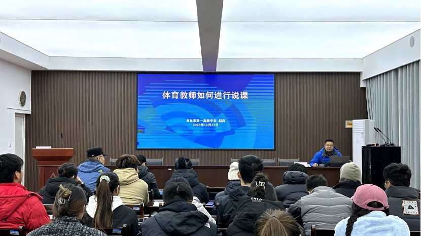 会议伊始,赵向指出,应注重说课的适应性、可行性和科学性,随后强调,教学设计要从确定员工的学习需要和学习目标进行改善,最后讲解了自己对教材的理解、教学目标的制定、教材的重难点等问题,举例说明了日常体育教学中可能会发生的情况和解决方案。